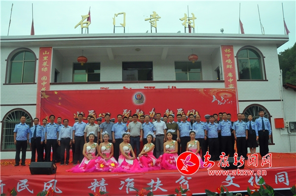 活動對石門寺村涌現出的3名優秀共產黨員、3名脫貧攻堅自強標兵、3名文明衛生示范戶、2名好婆婆和2名好媳婦進行了表彰。活動文藝節目演出在舞蹈《盛世歡歌》中拉開序幕,巡特警大隊民警表演的《擒敵拳》《硬氣功》,虎虎生威、技驚四座,讓群眾見證了漢陰公安維護平安的本領和力量;交警大隊表演的《交警指揮手勢操》整齊劃一,既向群眾宣傳了交通安全知識,又體現了交警規范執法執勤水平;在《警犬演練》中,警犬歐巴、華仔登場,分別進行了服從、搜毒、反暴恐等科目表演,展現了漢陰公安警犬中隊從無到有、從有到精的變化;巡特警大隊民警劉鵬表演的獨唱《父親》和城關派出所民警表演的三句半《警民共奏扶貧曲》情感豐富、寓教于樂,深受群眾喜愛;歌舞《陜南民歌聯唱》和《漢陰,我可愛的家鄉》,歌聲悠揚、舞姿優美,贏得現場觀眾陣陣掌聲。