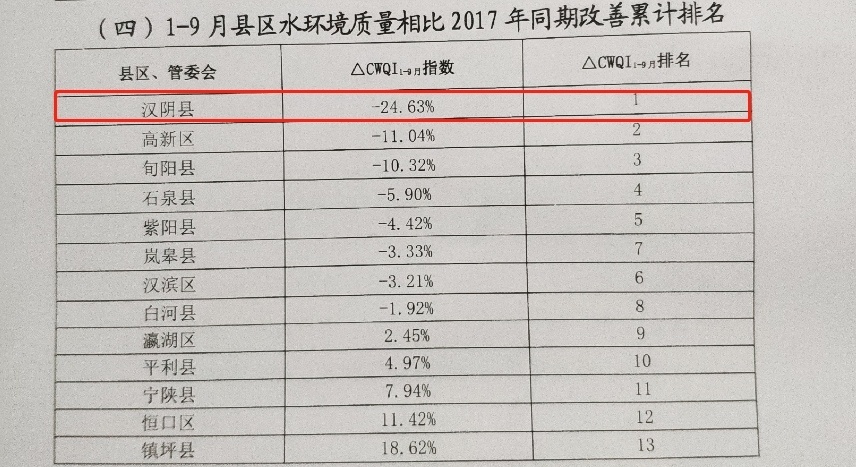 漢陰前三季度水環境質量改善成效居全市首位