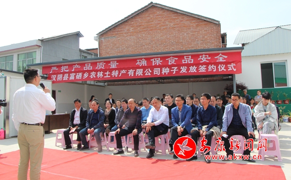 簽約儀式結束后,漢陰縣富硒鄉農林土特產有限公司與農戶簽訂了豇豆等蔬菜種植種子發放簽約儀式。