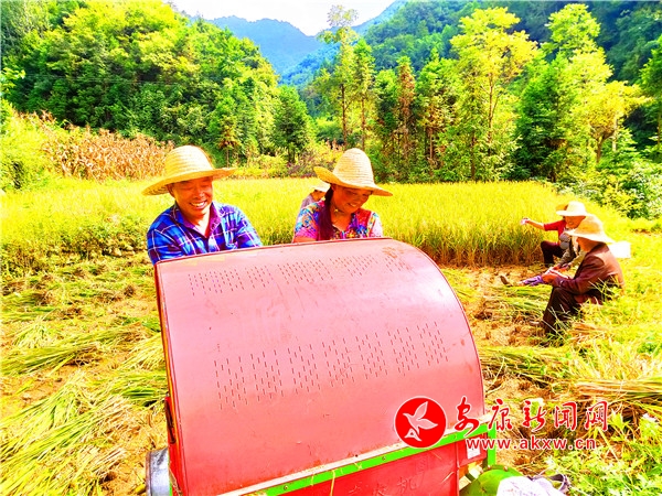 漢陰:金秋時節稻飄香 搶抓農時收割忙