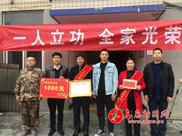 一行人先后來到城關鎮現役軍人劉家軍家中,為其送去“三等功”喜報和慰問金,對現役軍人劉家軍取得的榮譽表示祝賀,并詳細詢問了劉家軍家屬的生活狀況,感謝他們為部隊、為祖國培養了優秀的軍事人才,并鼓勵他們要一如既往地支持軍人在部隊安心服役,支持國防建設,爭取再創佳績。劉家軍的父親接過這份承載著榮譽的喜報,深情地表示會繼續做好軍人的堅強后盾,鼓勵孩子在部隊安心服役、建功軍營。