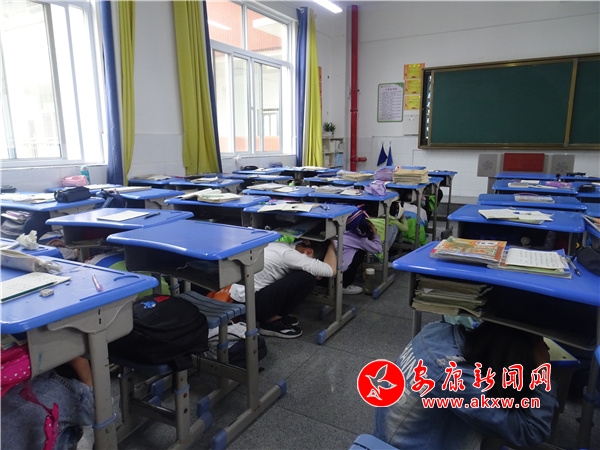 當(dāng)廣播發(fā)出“三長一短”地震警報(bào)信號時(shí),上課教師立即停止授課,轉(zhuǎn)而成為教室演練負(fù)責(zé)人,指揮學(xué)生抱頭躲在課桌下,蜷曲身體降低重心,并盡可能用書包保護(hù)頭部。一分鐘后,廣播發(fā)出緊急疏散信號。老師告知學(xué)生撤離教室,進(jìn)入緊急疏散演練環(huán)節(jié)。每班靠前后門的兩位學(xué)生立即把門打開,教師迅速將全班學(xué)生分成兩路縱隊(duì),指揮其按照預(yù)定的疏散路線有序撤離。樓道管理人員和跟班教師馬上到達(dá)指定崗位,協(xié)助學(xué)生撤離疏散到操場安全地方。所有師生在操場集合完畢,各班清點(diǎn)人數(shù)向總指揮匯報(bào),學(xué)校負(fù)責(zé)人進(jìn)行活動總結(jié)。