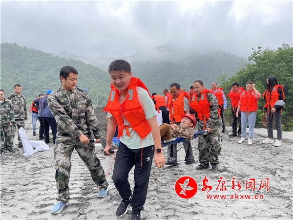 演練現(xiàn)場,全副武裝的人員轉移組、道路搶險組、醫(yī)療救助組隊伍魚貫而出展開行動,經(jīng)過3小時的協(xié)作配合,10余名被困村民被安全轉移,2名受傷群眾得到有效救治,3處道路滑坡點積地沙石被及時清理,水庫防洪壩被修繕加固,泄洪河道淤障得到全面疏通。