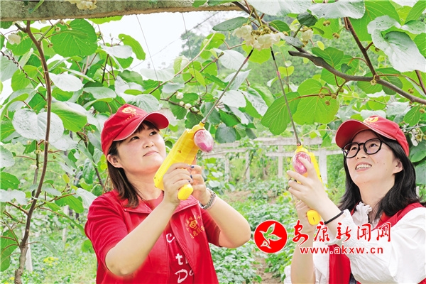 走進觀音河鎮(zhèn)中坪村的田間地頭,暖陽在獼猴桃的枝葉間投下斑駁的影子。今年已經(jīng)75歲的村民鐘恩旺,正迎著微風給獼猴桃人工授粉,看著眼前的滿枝繁花,老鐘樂的合不攏嘴,“今年花開的好,看這樣子,今年估計能收獲2000多斤,賺一萬多元。”有錢賺,老鐘便不覺得辛苦,談起獼猴桃種植的事,更是立馬來了勁頭,“等授了粉就要開始抹芽、后面還要疏果、施肥,我這個枝條綁的不是很好,這兩天還要重新縷一下。”在觀音河鎮(zhèn),像老鐘這樣掌握了獼猴桃種植技術(shù),依托獼猴桃產(chǎn)業(yè)實現(xiàn)增收的村民還有很多。全鎮(zhèn)7個村,有6個村都將獼猴桃作為主導產(chǎn)業(yè)在發(fā)展,但在2017年之前,整個觀音河鎮(zhèn),卻并無一人專門種植過這種水果。從對種植獼猴桃一無所知到掌握技術(shù)要點,村民學到新技術(shù)的背后,都是因為鎮(zhèn)黨委、政府對獼猴桃產(chǎn)業(yè)的重視。