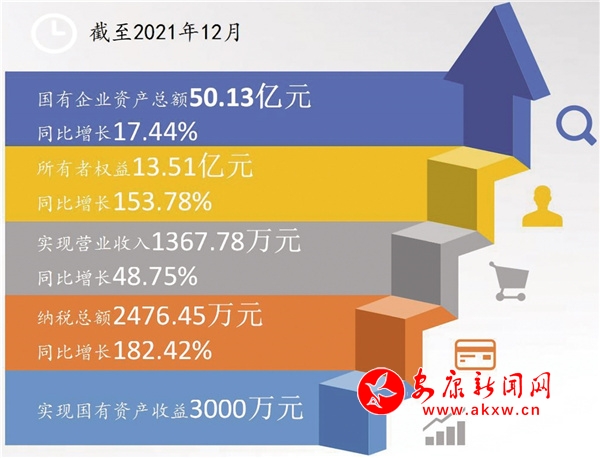 國有企業的發力,承接了市場缺位補位的經營活動,大大助推了縣域重點項目和民生實事建設,有力支持了脫貧攻堅,保障了群眾物質文化需求。截至2021年12月,縣屬國有企業總資產50.13億元,同比增長17.44%,所有者權益13.51億元,同比增長153.78%;實現營業收入1367.78萬元,同比增長48.75%;納稅總額2476.45萬元,同比增長182.42%;實現國有資產收益3000萬元。