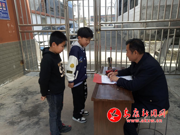 每天早晨,在漢陰縣澗池鎮東岳小學大門口,年近60歲的保安王懷軍就早早地等候在那里配合當天值日教師,為走進學校的教師和學生檢測體溫,提醒到校學生注意在校安全。