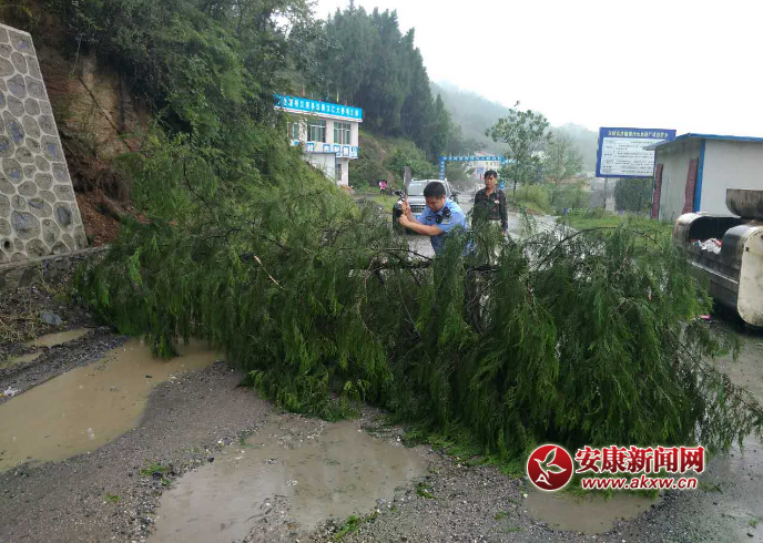 漢陰:大樹橫路中通行受阻 警民聯(lián)手除“路障”