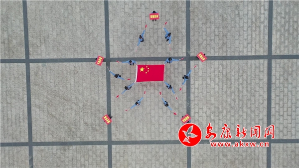 干警們著藍色檢察制服來到巴山珍稀植物園,以國旗為中心,組成一個大“五角星”,每個“角”上的干警心向國旗,莊重的同國旗合影,表達對祖國的祝福:“立檢為公,執法為民,是我們的初心;堅守法治,堅守底線,是我們的使命。我們依法能動履職,為大局服務,為人民司法,努力讓人民群眾在每一個司法案件中感受到公平正義。祝祖國國泰民安,繁榮昌盛,我愛你中國。”