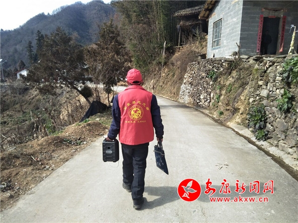 用實際行動感黨恩,李德國從大年初三起加入抗疫隊伍,和干部們一起沖鋒在疫情防控第一線。在宣傳走訪期間,李德國帶頭示范,主動帶上口罩,每天在村上巡邏一圈,拿上宣傳單頁上門發放。