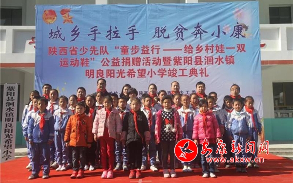 安康新聞網(wǎng)訊(通訊員 肖寶)近日,江蘇省勵(lì)志陽(yáng)光助學(xué)基金會(huì)及明良海外置業(yè)一行來到紫陽(yáng)縣洄水鎮(zhèn)明良陽(yáng)光希望小學(xué),實(shí)地查看希望小學(xué)教學(xué)樓建設(shè)使用情況、捐贈(zèng)課桌椅并參加教學(xué)樓竣工典禮。