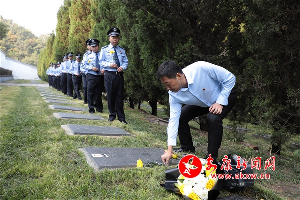 全體公安民警來到原紫陽縣公安局煥古派出所民警、革命烈士、全國公安系統二級英雄模范羅春明墓碑前,依次獻花、行鞠躬禮,并為長眠于此的革命烈士掃墓。