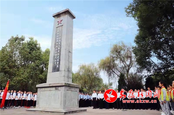 紫陽小學學生齊唱《我們是共產主義接班人》。全體人員手持白菊花,依次向革命烈士紀念碑獻花,行鞠躬禮,寄托深切哀思。