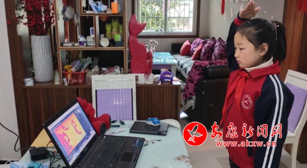 本網訊 (通訊員 陳道廣 魏裕乾)3月9日早8時20分,紫陽縣蒿坪小學全校師生按照約定,準時在家打開視頻,一起參加特殊的“線上升旗儀式”。這是該校第四次組織在線升旗,共計1652名學生參與觀看,雖然不能親身站在操場上唱響國歌,但是隊員們用特殊的方式,表達了自己對祖國的熱愛,同時也讓少先隊員們感受到了祖國的偉大和全國人民的團結。