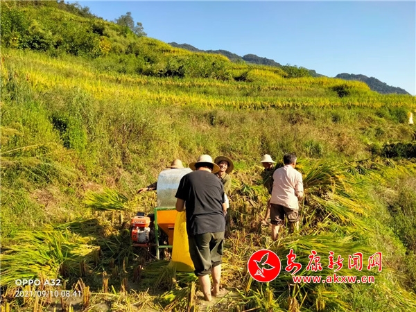 本網訊(通訊員 陳萌茹)稻谷收割季處處豐收景。金秋九月,秋風送爽,正是水稻收獲的季節。紫陽縣洄水鎮連橋村的稻田地里,成片黃澄澄的稻田延至天際。近日,筆者來到紫陽縣洄水鎮連橋村,看到大片的水稻已經開始收割。
