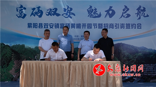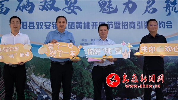 本網訊(通訊員 唐波)7月7日,紫陽縣雙安鎮白馬村黃桃基地內一派繁忙豐收的景象。來自縣內外的游客相聚黃桃園,共同見證雙安鎮富硒黃桃開園節及招商引資簽約會舉行,一起采摘美味黃桃,享受勞動樂趣,品嘗豐收喜悅。